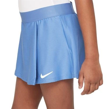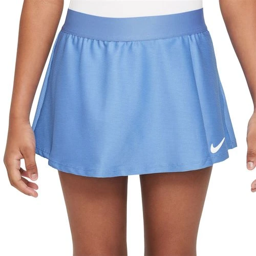 The flouncy style of this girls’ Nike tennis skirt allows you to move comfortably on court, while its stretchy, sweat-wicking knit fabric keeps you cool and comfortable. The Nike girls’ Court Dri-FIT Victory Flounce skirt has a single front pleat and attached inside shorts for ball storage and added coverage.